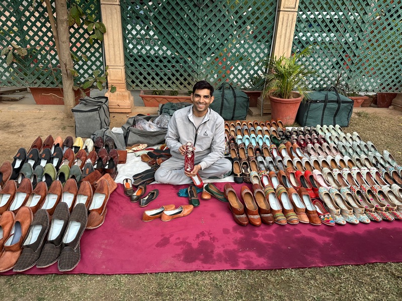 Selling handmade shoes at our hotel. Guess who bought a pair?