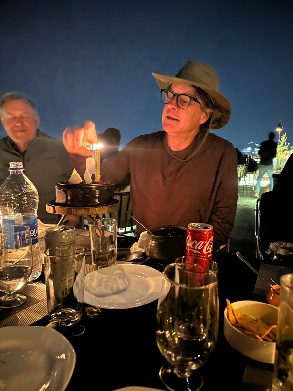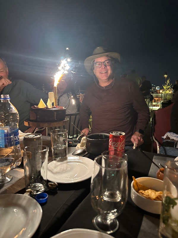 February 10, today is Rich’s birthday and we took him out to dinner on a rooftop restaurant. Beautiful views of the city.